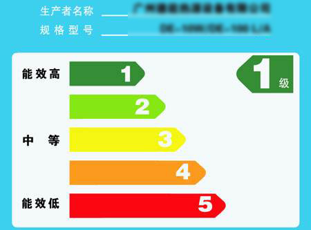 國家在2015年正式推出《熱泵熱水器機(器)能源效率標識實施規則》(以下簡稱規則)。《規則》將空氣能熱水器的能效等級劃分為五個等級,分別為1~5級。從5至1,能效等級越來越高,代表著熱水器消耗同樣的電能,可以產生的熱量越多、越省電。